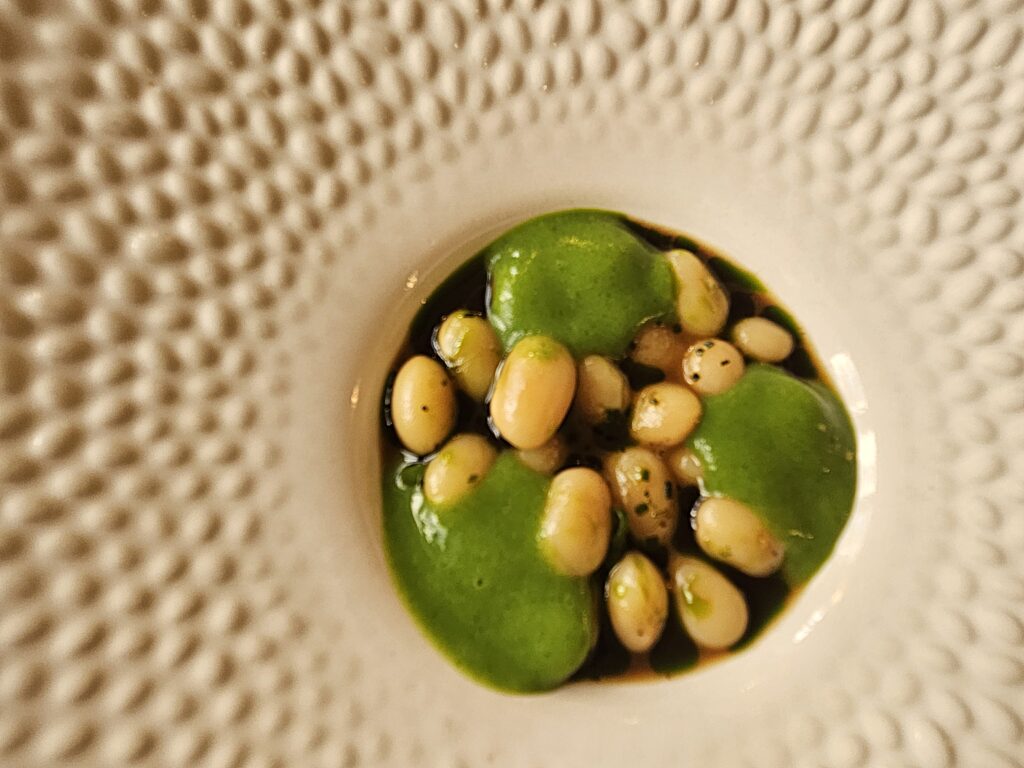 Der Name Géosmine steht für den Duft frisch gepflügter Erde – und genau dieses sensorische Motiv zieht sich durch das Menü von Maxime Bouttier. Bereits die leicht rauchige Butter zum Brot und Grissini mit Kalamata-Mayonnaise eröffnen eine aromatische Reise. Ein Tartelette mit Broccoli und Zitrusfrüchten zeigt die präzise Balance zwischen Frische und Tiefe. Calamares mit Totentrompeten und Steinpilzen, begleitet von geräuchertem Thunfischmousse, bringen Umami und Eleganz auf den Teller.