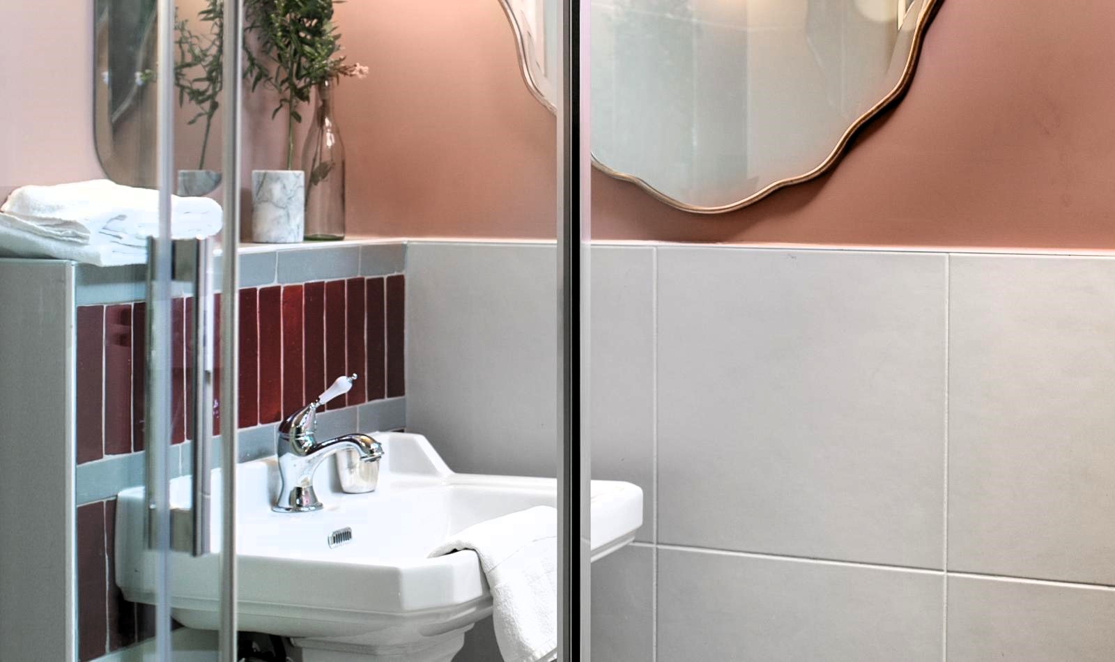 Im Eingangsbereich, der zugleich als Café dient, laden Plüschsofas und -sessel zum Verweilen ein. Vasen mit Trockenblumen, alte Bücher und Fotografien, viele Retro-Spiegel und Wände im Shabby-Chic-Stil schaffen eine heimelige Atmosphäre. Man kann sich kaum sattsehen an all den schönen, ausgesuchten Objekten. Besonders charmant ist der kleine Innenhof in zarten Rosatönen, dekoriert mit Pflanztöpfen und Gartenmöbeln aus Zink sowie Lichtergirlanden im Guinguette-Stil. Doch erstaunlicherweise wird einem nicht schwindelig bei diesem Augenkarussell, vielmehr kommt man herunter, fühlt sich angekommen.
